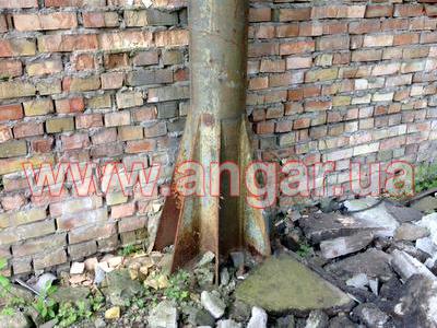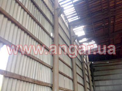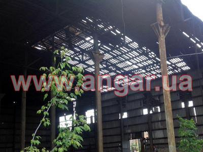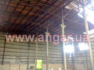 | Ангар прямостенного типа. Установленный каркас. Двухпролётный. Колонны из трубы сечением 273мм, толщина стенки 8мм. Всего: несущих колонн 21шт., торцевых колонн 4шт. Шаг колонн 4м. Высота колонны 9м. Крепление к фундаментам на анкерах. Предусмотрена установка кран балки Q = 3.2 т на высоте 7,50м. Фермы разборные. Верхний, нижний пояс и раскосы из спаренного уголка сечением 63мм. Высота фермы 1,50м. Всего 7 ферм. |