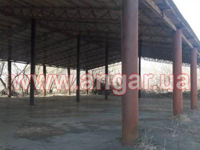 | Ангар прямостенного типа. Каркас навеса. Установлен. Двускатный. Двухпролетный. Колонны из трубы. Центральный ряд колонн из трубы сечением 325мм, колонны по краям навеса из трубы сечением 426мм. Всего 30шт. Шаг колонн 6м. Высота центрального ряда колонн 7м, высота колонн по краям навеса 6м. По колоннам крепится швеллер сечением 200мм. Колонны забетонированы в фундамент. Фермы с параллельными поясами. Верхний пояс из трубы сечением 114мм, толщина металла 6мм, нижний пояс из уголка сечением 63мм, раскосы из уголка. Всего 35(3 шт. не хватает). Шаг ферм 3м. Общий вес около 22т. |