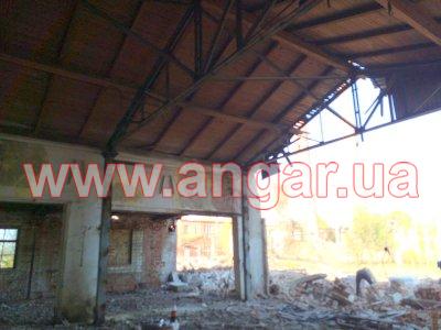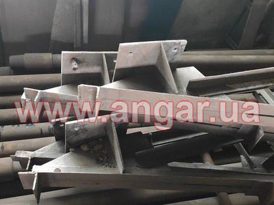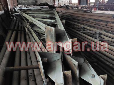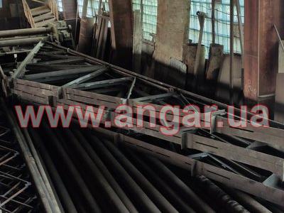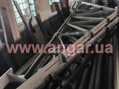 Ангар прямостінного типу. Демонтований каркас. Колони в коробку зварені з двох швелерів перерізом 200х180мм. Кріплення колон к фундаментам на анкерних болтах. Крок колон 6м. Всього 8 колон. Ферми металеві двоскатні. Верхній та нижні пояси вроблені зі спареного кутника перерізом 75мм Розкоси з кутника перерізом 45мм. Кріплення ферм до колон болтове. Всього 4 ферми. Між фермами встановлювались в’язі з кутника перерізом 50мм. Ангар демонтований, складований і готовий до відвантаження.