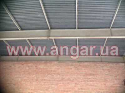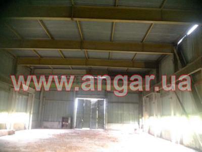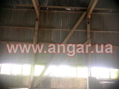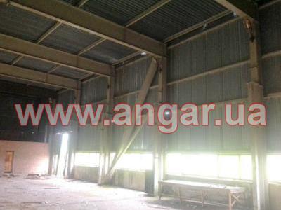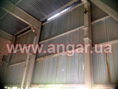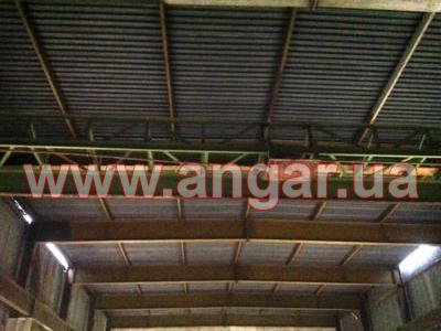 |  Ангар прямостенного типа. Модульное здание типовой проект Канск. Установлен в полной комплектации. Всего 13 рам. Промежуточные несущие колонны из двутавровой балки сечением 300х390мм. Всего22шт. (11 рам). Торцевые несущие колонны, и торцевые колонны под воротами из профильной трубы сечением 320х400мм. Всего 8шт. (2 рамы).Шаг колонн 6м. Крепление к фундаментам на анкерах. К несущим колоннам, на болтах, крепится профильная труба сечением 180х180мм. Всего 21 шт. (1шт. не хватает). Внутренние кровельные балки из двутавра сечением 1000мм. Всего 22шт. Торцевые подстропильные балки из швеллера сечением 240мм. Все соединения болтовые. Подкрановый путь из двутавровой балки сечением 660мм, Q = 5т. Установлен на высоте 5,30м. Всего 30м подкранового пути. Кровельные прогоны из швеллера сечением 240мм. Всего 504 м.п. Стеновые прогоны: 2 ряда полосы из профильной трубы сечением 160х160мм, всего 288 м.п., и 2 ряда полосы из гнутого швеллера сечением 160мм, всего 288 м.п. Обшит ангар сендвич панелью, наполнитель ППУ, толщина 60мм. На крыше профнастил. В комплекте 2-е торцевых распашных ворот. |