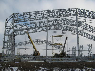 Будівництво Компанія "Ангар" виконує весь перелік будівельно-монтажних робіт з будівництва будівель промислової та/або комерційної нерухомості. Ми будуємо всілякі будівлі, ангари, склади, цехи будь-якого ступеня складності, використовуючи як конструції б/в (з якими можна ознайомитись на нашому сайті) так і нові, запроектовані та виготовлені спеціально для вирішення індивідуального завдання Замовника. Ми можемо запропонувати до будівництва як невеликий склад на 200 кв.м., так і серйозне логістичне господарство або виробничі цехи з площею на багато десятків квадратних метрів. Як варіант, просимо Вас ознайомитися з фотографіями збудованого нами однопрогонового авіаційного ангару розміром 48*36 та площею 1728 кв.м. Ми вибрали цю будівлю для зразка не випадково. Дана будівля, крім інших умов, має розсувні ворота з шириною прольоту 24м. Тобто мало того, що ширина будівлі 36 метрів не має проміжних колон, додатково з одного боку будівлі колони відсутні на ширину 24м. Додатково загальна висота будівлі складає 12м. І незважаючи на все вищесказане проектування виготовлення та будівництво виконано фахівцями нашої організації без залучення третіх осіб. Фотографії даного об'єкта наведені нижче, на них Ви можете побачити будівлю від моменту проектування (ескіз) і до початку цільової експлуатації будівлі. З усіх питань, пов'язаних із будівництвом (проектуванням, виготовленням), просимо звертатися до офісу компанії за телефонами та адресами електронної пошти, вказаними на сторінці Контакти.